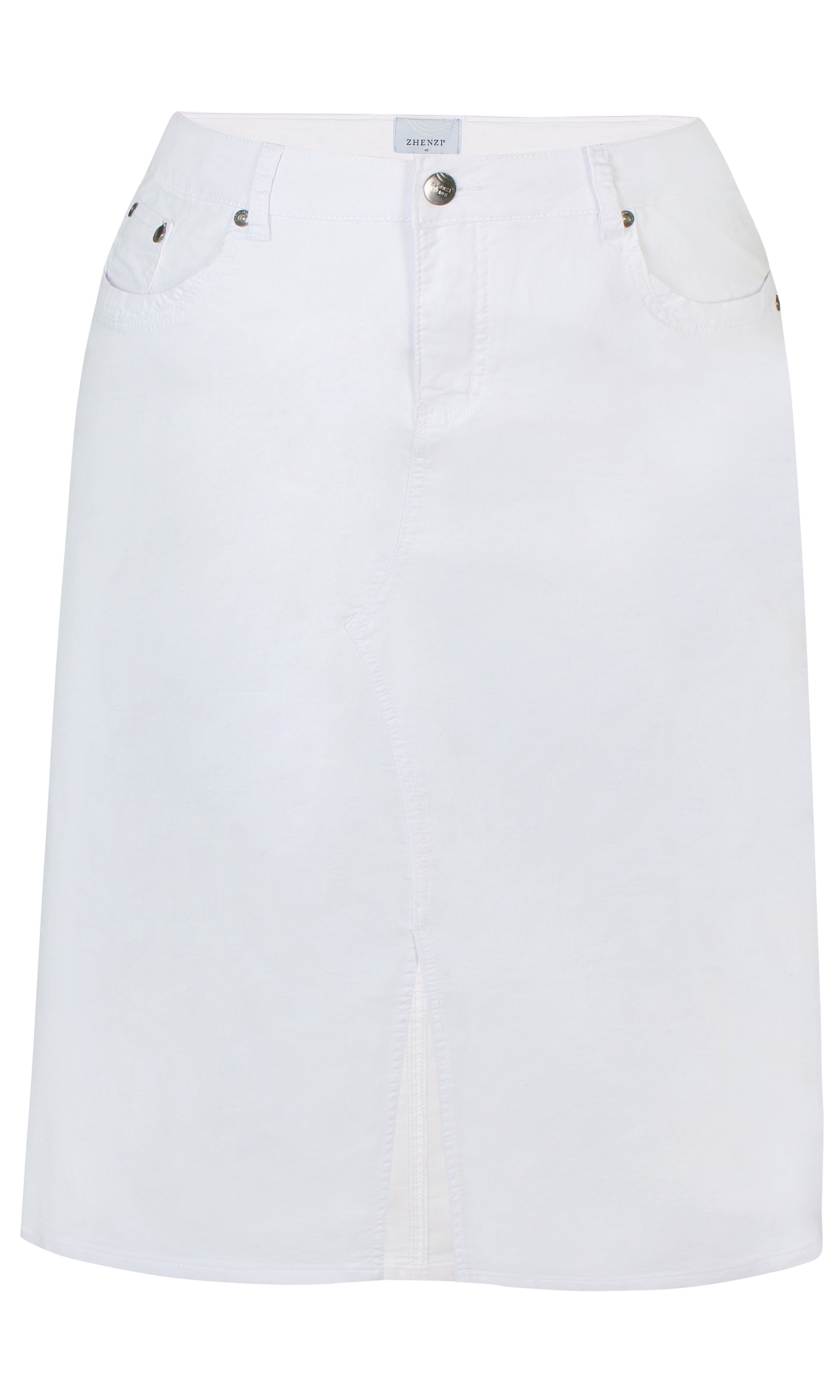 Oplev en perfekt kombination af komfort og stil med denne smukke nederdel fra Zhenzi. Med en længde på 85 cm i alle størrelser, er denne nederdel ideel til enhver anledning. Den fås i fire elegante farver: hvid, sort, cyclamen pink og powder blue, hvilket gør det nemt at finde den perfekte nuance til din garderobe. Nederdelen er fremstillet af 65% bomuld, 32% polyester og 3% elastan, hvilket sikrer både komfort og en let strækbarhed, der tilpasser sig din kropsform.