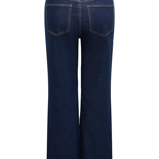 Disse jeans fra ONLY CARMAKOMA er skabt til dig, der ønsker komfort og et moderne udtryk. Den høje talje giver en flot pasform, mens det brede ben sikrer god plads fra hofte til ankel. Den mørkeblå denimfarve gør bukserne alsidige og lette at style til både hverdag og mere afslappede arrangementer.