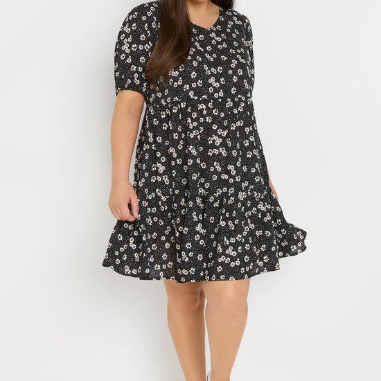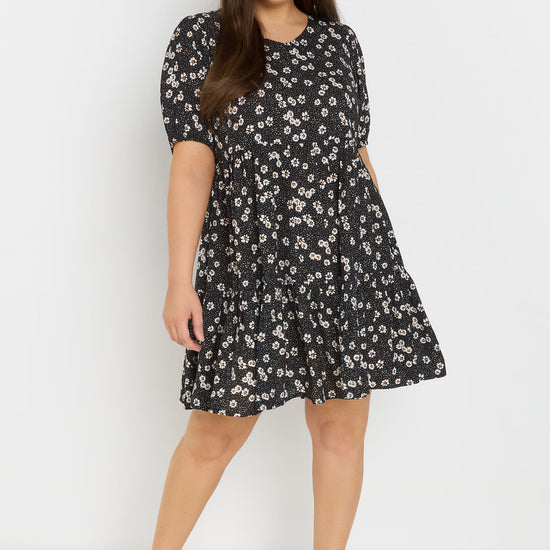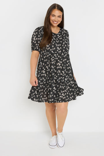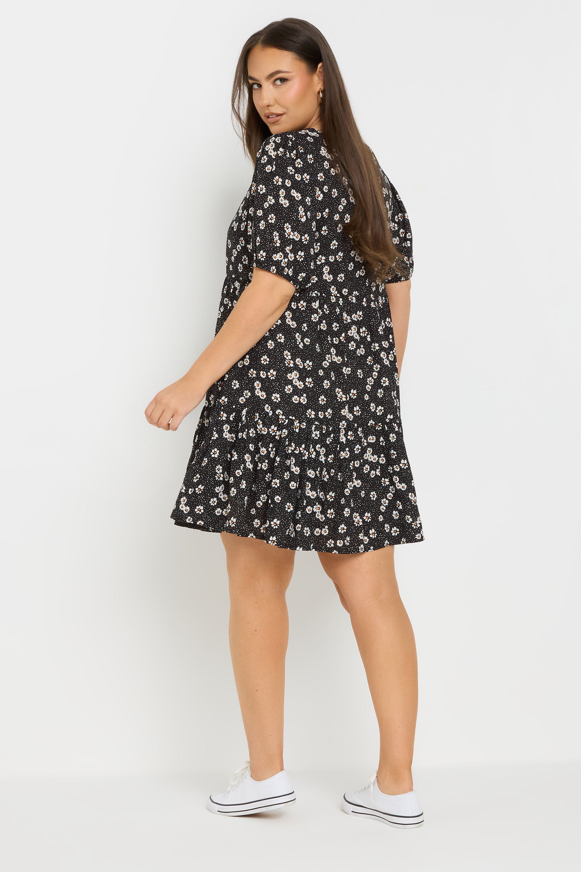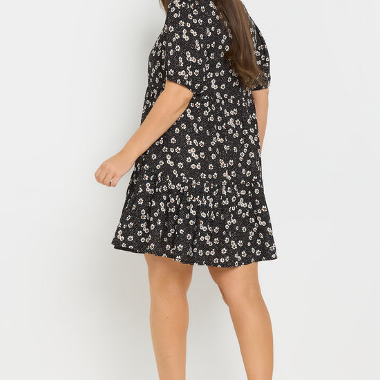 Forbered dig på foråret med denne skønne kjole fra Yours. Denne kjole er dekoreret med et charmerende daisy print, der indbyder til solrige dage og afslappede gåture. Med sine korte ærmer og en v-halsudskæring, er denne kjole ideel til både hverdagsbrug og særlige lejligheder.