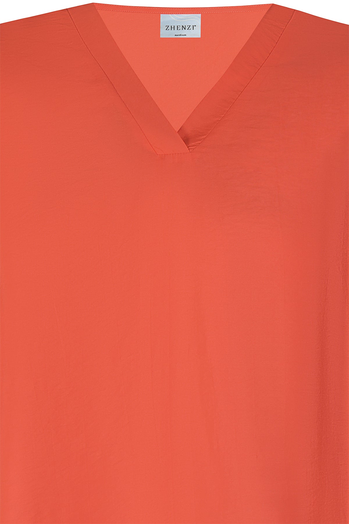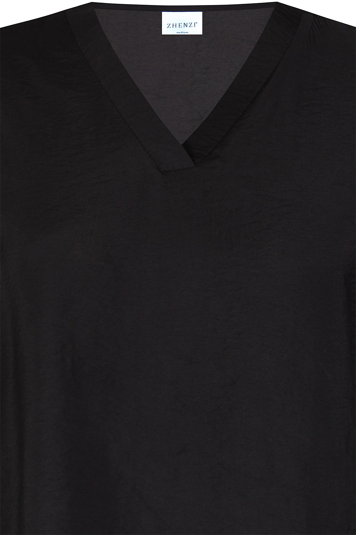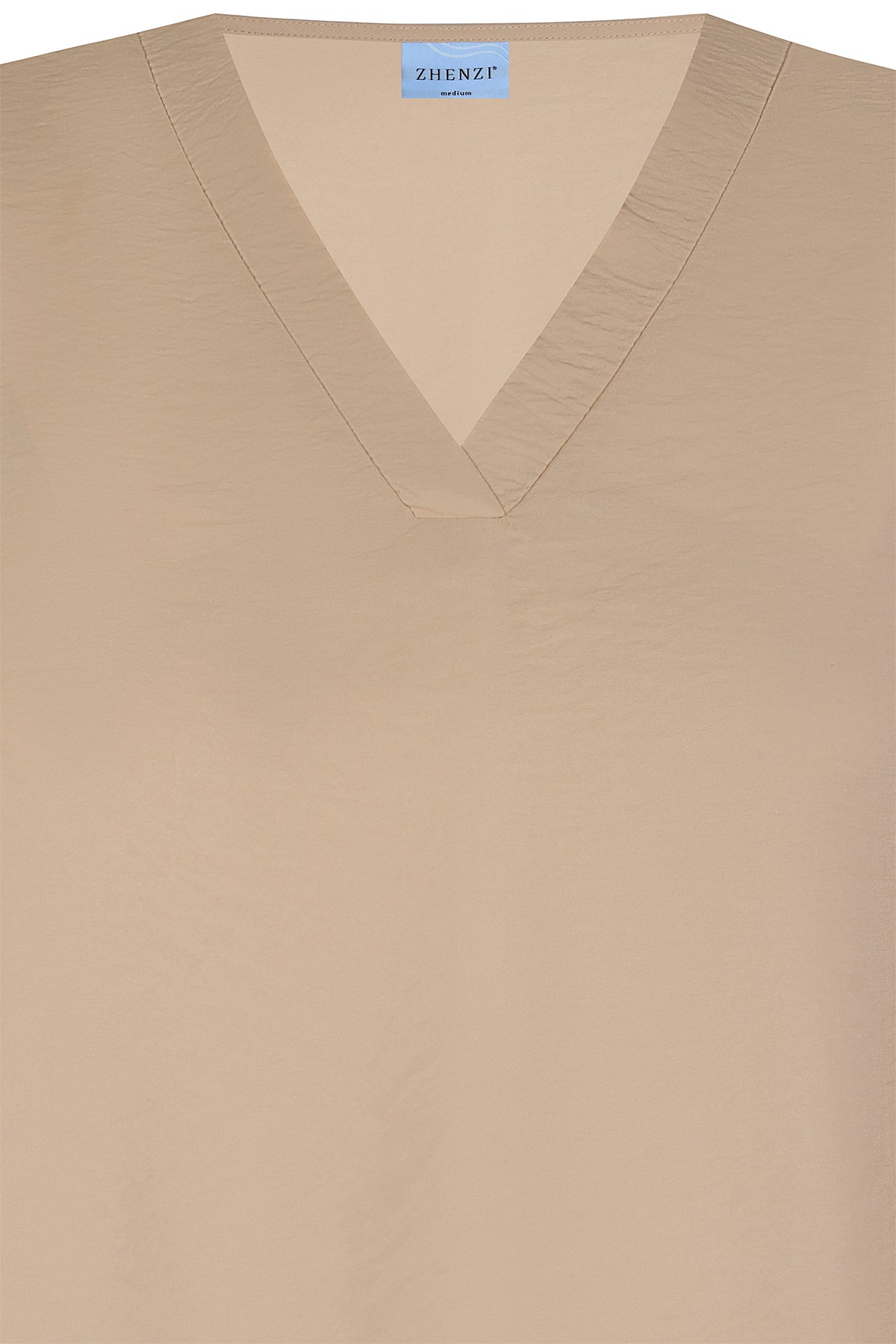 Oplev komfort og stil med denne smukke bluse fra Zhenzi. Fremstillet af 88% viskose og 12% polyamid, tilbyder denne bluse en let og behagelig følelse på huden. Den er tilgængelig i tre flotte farver: Sand, Black og Coral Poppy, hvilket gør det nemt at finde en variant, der passer perfekt til din personlige stil. Med sit afslappede fit og en elegant v-halsudskæring er denne bluse ideel til både hverdag og festlige lejligheder.