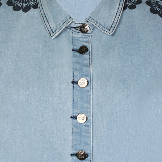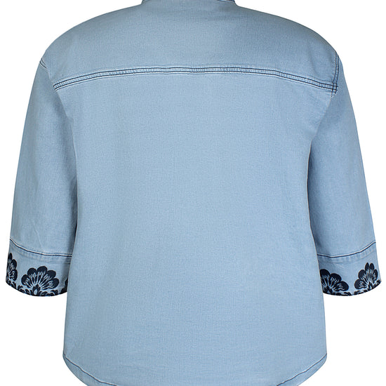 Den er designet i en lækker Angelite denim vask, der giver et friskt og tidløst udseende. Med en ryglængde på 72 cm i størrelse M, tilbyder denne jakke den perfekte balance mellem funktionalitet og fashion. Den er tilgængelig i størrelserne S, M, L, og XL, så du kan finde den ideelle pasform. De mørkeblå blomsterbroderier på ærmerne tilfører et feminint touch, der gør jakken velegnet til både hverdag og mere festlige lejligheder.