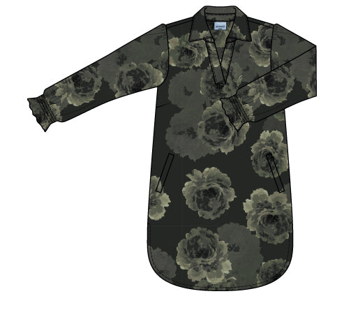 Kjolen har en elegant V-udskæring med lille krave, som giver et sofistikeret touch. Den let afrundede kant forneden giver ekstra bevægelse og et afslappet look. Kombinér kjolen med et par leggings eller strømpebukser for et komplet outfit. Se flere flotte plus size kjoler eller find dine nye favoritter blandt vores leggings.